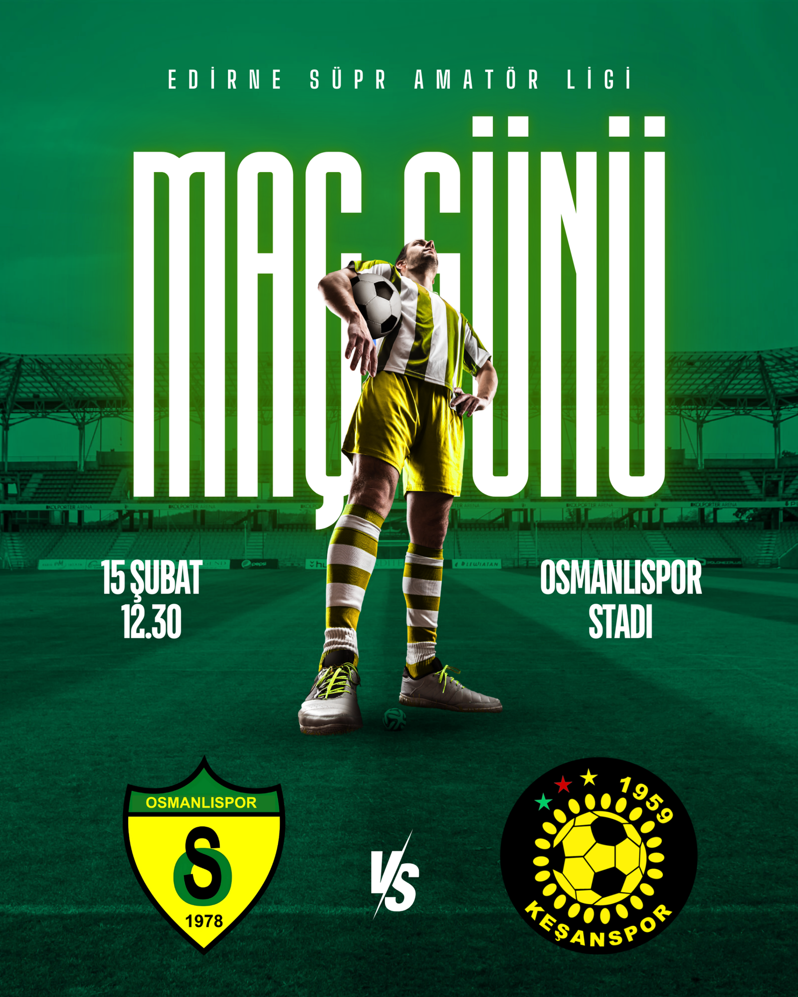 Edirne Süper Amatör Ligi’nin iki dev takımı Osmanlıspor ve Keşanspor karşılaşması 15 Şubat Günü gerçekleşecek. Maç, Osmanlıspor Stadı’nda oynanacak olup tüm futbolseverleri ve taraftarımızı bekliyoruz.